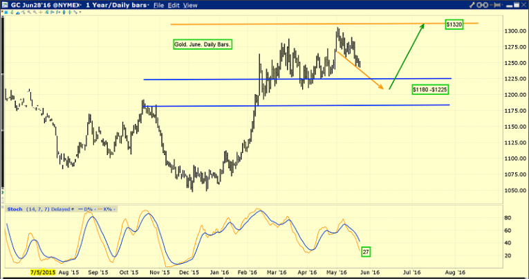 The SPDR fund tonnage would not be rising, and the price action would not be as gentle as it is, if major institutions were sellers now. They are buyers, and as the price drifts towards the $1228 area, I expect them to continue to buy, and so I expect the price action to continue to be calm and orderly.