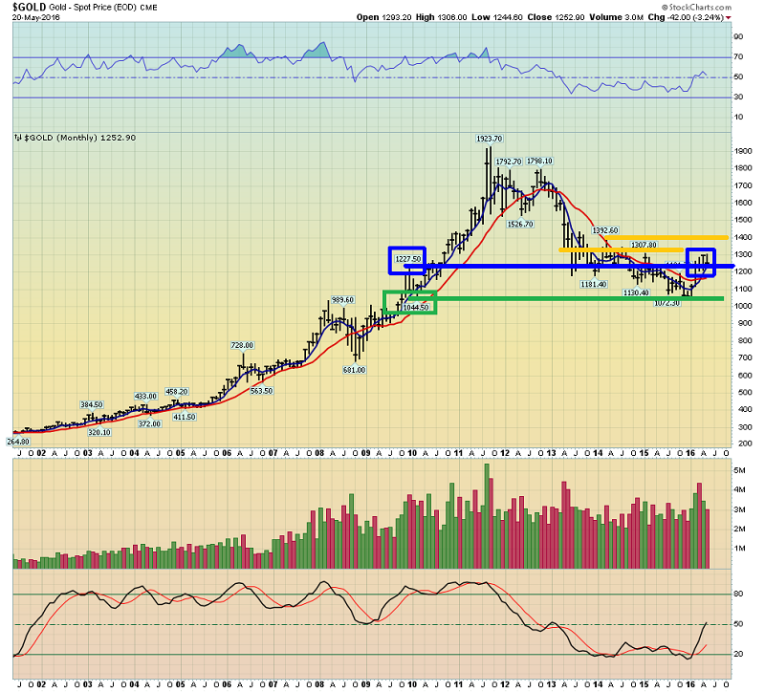 Gold spent about two and a half years in that price area, and then it charged up towards the first key resistance at $1307 - $1320.