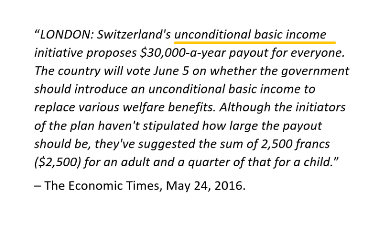 It’s still early in the “basic income” game, but I’ve predicted that the failure of QE to stimulate inflation will bring government orchestrated wage inflation and moderate gold revaluation.