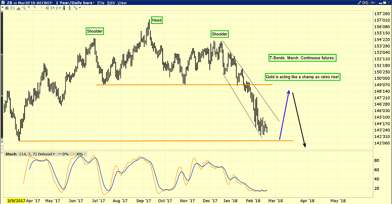 This is the T-bond chart. Most bank analysts thought that gold would fall if the Fed launched quantitative tightening and rate hikes. Instead, gold has rallied since the tightening cycle began, as I predicted it would.