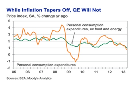 I can’t read Bernanke’s mind any better than Wall St traders can but I’m not convinced he’s as close to pulling the trigger as many assume. Swings in the markets are making the decision that much harder. The Fed Open Market Committee is well aware of the impact this move will have. They want to time it to ensure the change in QE buying does not become a self-fulfilling prophesy that crashes bond markets and takes Wall St down with it.