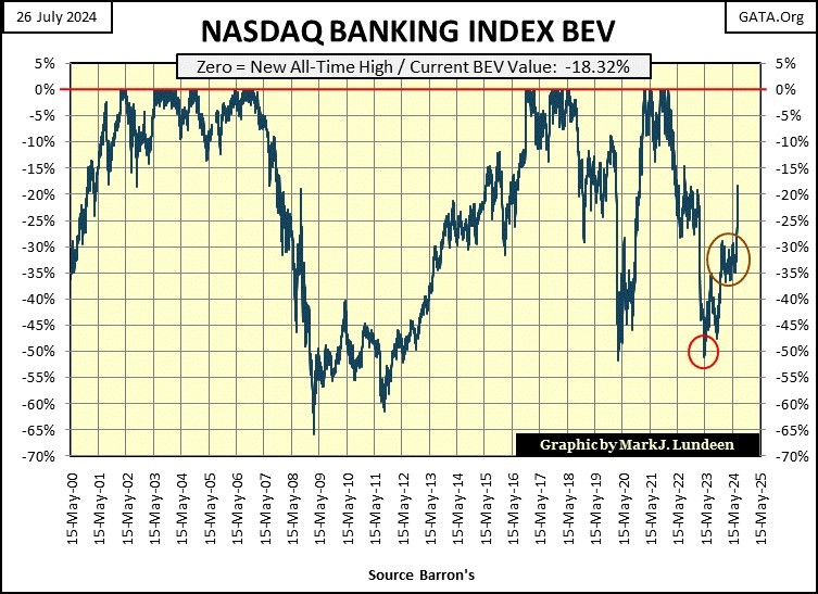So, why is the NASDAQ Banking Index now advancing off its lows of May 2023? Are bond yields once again declining, bond valuations once again advancing? Not really, so I don’t know what is going on here. I do know this; accounting standards from decades ago have been lowered. This is especially so following the 2007-09 Sub-Prime Mortgage Debacle.