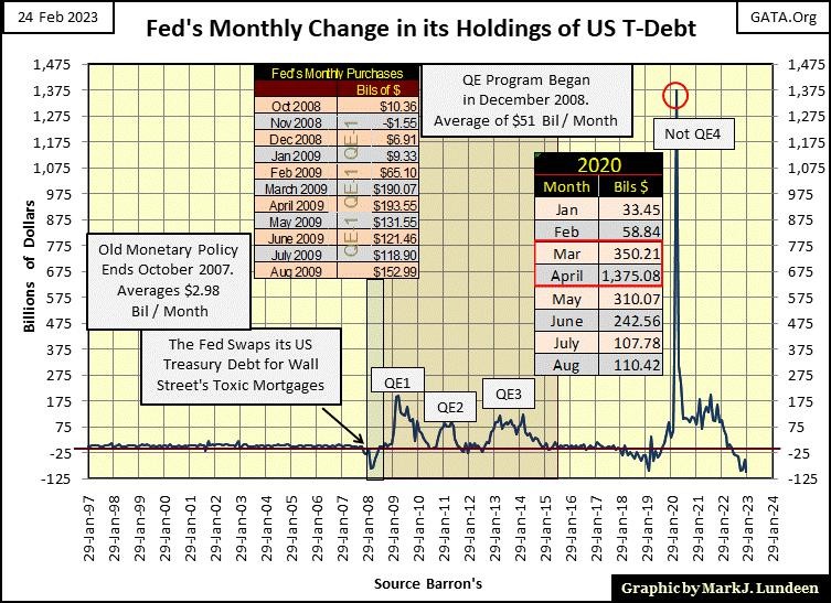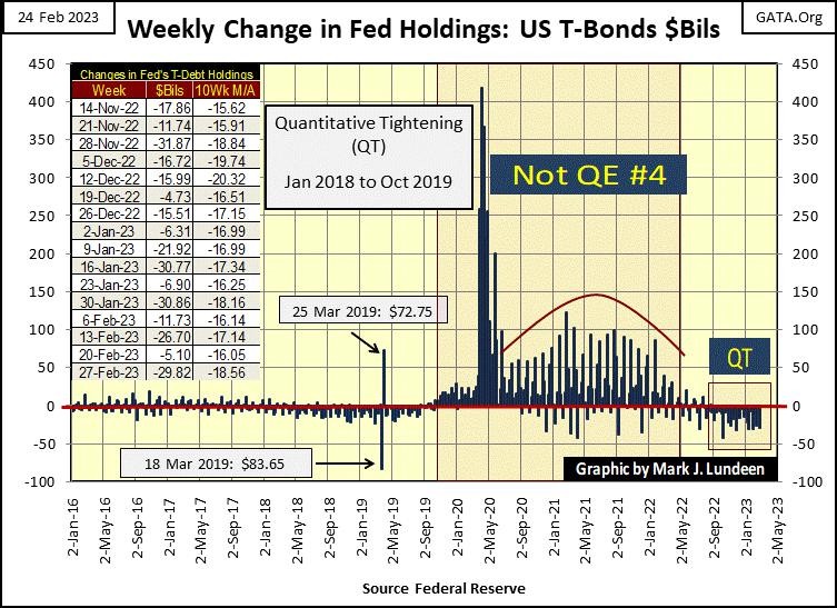 The last time the FOMC had a positive net weekly “injection” into the economy was the last week of last June. Since then, they’ve withdrawn “liquidity” from the market every week, as seen in the Red Box at the far right in the chart below. That is a total reduction of $479.7 billion of US Treasury Debt from the Federal Reserves’ balance sheet since last June. That seems like a lot to me, though that is only a small fraction of the total “injection of liquidity” the idiot savants at the FOMC “injected” into the financial system during their Not QE #4.