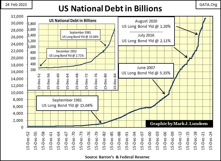 But for the Federal Government, all that changed after September 1981. By August 2020, with the US national debt then above an unserviceable $26 trillion, 26 times greater than it was in September 1981, the yield for the US long T-bond declined to a pathetic 1.20%.
