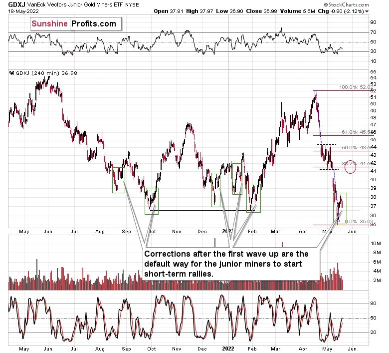 Let’s keep in mind that junior miners have triangle-vertex-based reversal over the weekend, so they might form some kind of reversal on Friday or Monday.