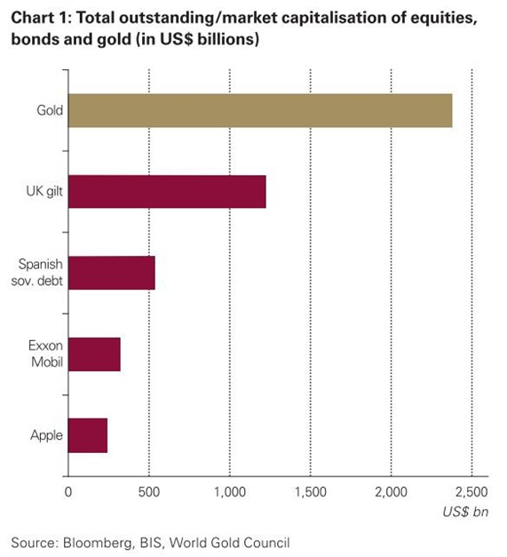 The sheer size of the gold market makes it one of the most readily available and accessible financial assets in the world today. The World Gold Council reporting on its size has this to say,