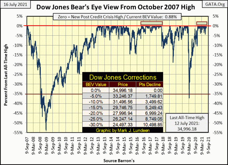 The BEV values seen above reveals where all the money has been flowing to, which so far in 2021 hasn’t been into my favorite groups; the old monetary metals and their miners at the bottom of the list. As precious metal assets are counter-cyclical investments to the broad stock market, it’s now just a matter of patience. We’re waiting for all that inflation, now flowing into indexes #1-19 above, to reverse direction, and begin flowing toward the old monetary metals come the next market decline. Do you think differently? Keep reading and you may change your mind.