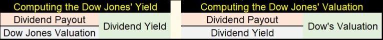 The math is simple. We treat the Dow Jones as a bond to compute its dividend yield, in the left table below.