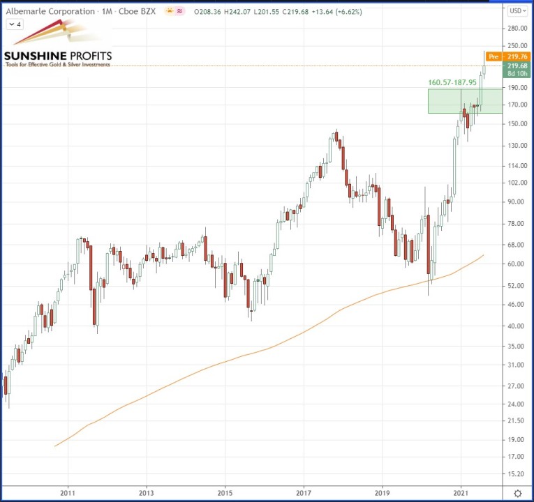 Figure 1 – Albemarle Corp (ALB) stock (monthly, logarithmic scale)