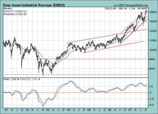 - The PMO is showing falling tops against the price chart showing rising tops. This is a bearish non-confirmation