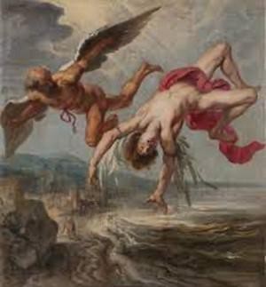 Daedalus and his son Icarus were imprisoned by King Minos in the Labyrinth that Daedalus had built. The only way out was to fly and Daedalus came up with the idea to make bird wings that were attached to their bodies with wax. They managed to flee from the labyrinth using their wings. Icarus had been warned by his father not to fly too close to the sun as the wax would melt and he would crash. But carelessness and hubris couldn’t stop Icarus from reaching ever higher until the wax melted and he crashed to his death.