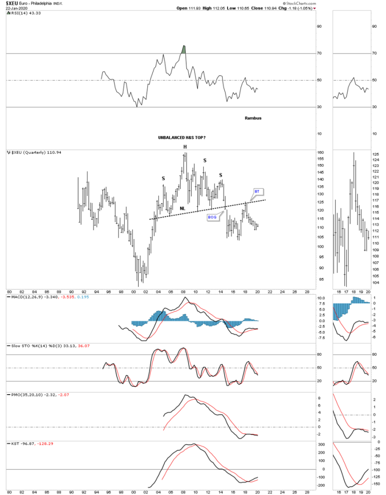 Below is the quarterly chart for the XEU which puts that massive H&S top in perspective.