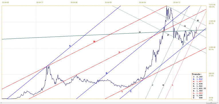 Nothing is ever certain in markets, but the excellent channel ratios add confidence to this analysis and specifically to the prospect that channel JKL could be projecting the future trend of the price of gold as its next medium to longer term bull channel. If channel JKL really contains the price of gold until the end of 2020, the gold price will end next year above $1500 and possibly as high as $2300.