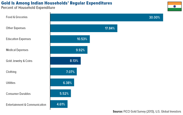The same FICCI study also found that gold is a regular line item in most Indian households’ budgets, comparable to what they spend every year on medical expenses and clothing.