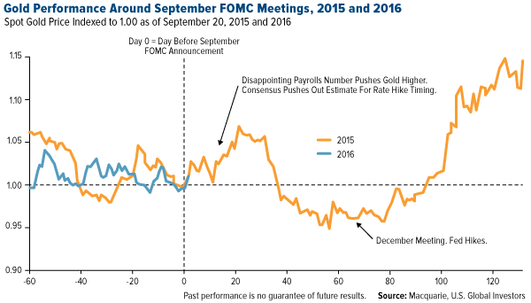In a note last week, UBS said that as long as the Fed doesn’t hike rates too quickly, gold should resume its upward momentum. And remember, the bull market was triggered last December after the Fed raised rates for the first time in nearly a decade.