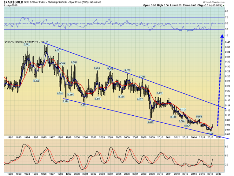 Sometimes gold stocks lead gold, and sometimes gold leads the stocks. The good news is that even if there is a pullback in the gold price, the inflation focus of large value fund managers, Kuroda’s money drop helicopters, European NIRP policy, and another stock market panic in America are all likely to combine, and make that pullback very short-lived.