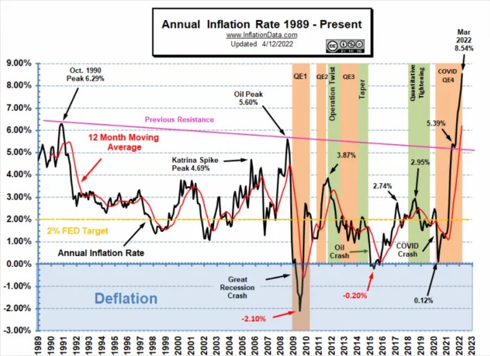 This second graph picks up where the chart above left off showing the beginning of the current round of inflation starting in 2020.