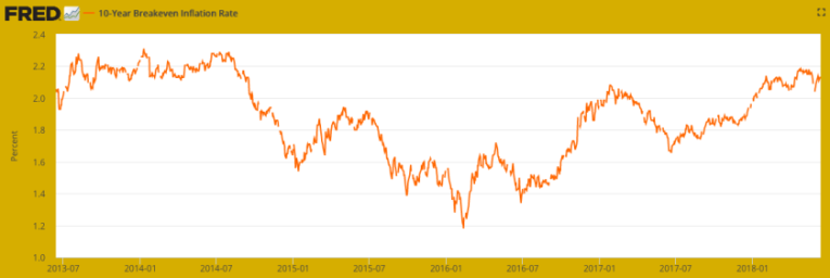 So the yield curve continues to flatten but nominal interest rates continue to rise, which is consistent with building inflationary pressures. The 10 year yield bottomed in mid-2016 and has recently hit and exceed our target of 2.9%.