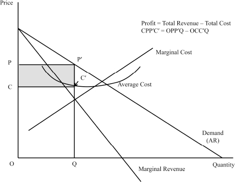 Simple economics demonstrates why the inflationary-profits hypothesis is bunk. Assume firms have some control over the price their products command in the marketplace, which they exercise by choosing how much to produce. Profit maximization means picking the quantity of output that makes additional revenues equal to additional costs. Firms produce and sell that quantity, charging a price in excess of additional cost. The below graph from Alchian and Allen’s excellent text, Universal Economics, shows the setup.