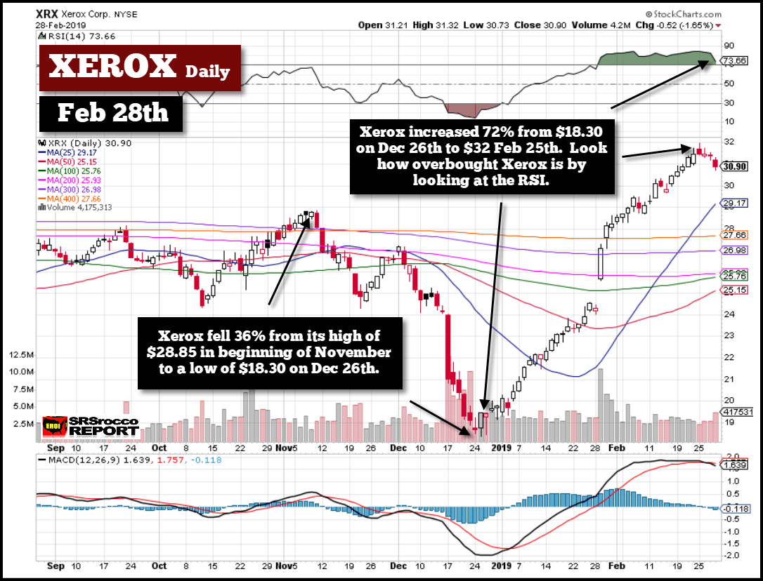 Xerox’s share price experienced a waterfall from nearly $29 at the beginning of November to a low of $18.30 on December 26. However, due to the Fed’s “Dovish Market Policy” and the massive central bank monetary injection, Xerox’s stock not only made up for all of the losses, but it also added another $3+ to gain 72% in a cool two short months.