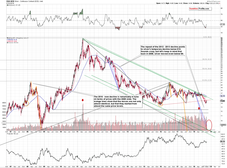 Summing up, the seemingly bullish implications of the analysis of the inverse head-and-shoulders pattern in mining stocks are too weak to change the overall outlook, especially in light of the new confirmation that we saw from the SLV ETF and its volume. The analogy to 2013 remains in place and the outlook remains strongly bearish.