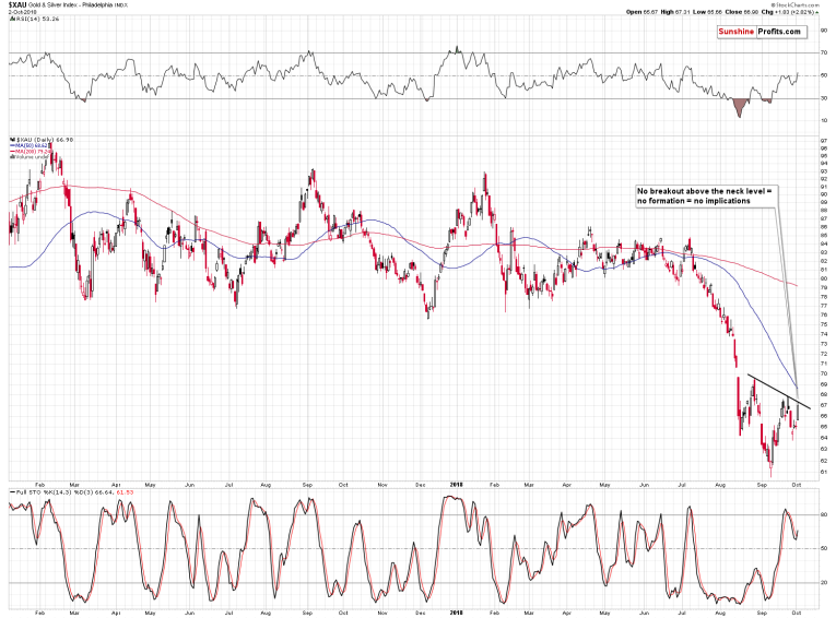 The XAU Index – the index that covers both: gold stocks and silver stocks. No breakout.
