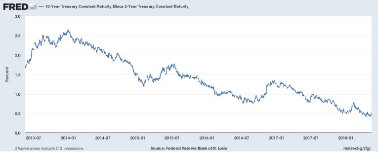 If the synchronized global growth situation was still indeed a fact, long-term bond yields would be rising at least as fast as short-term rates were rising. Hence, yield spreads would not be contracting.