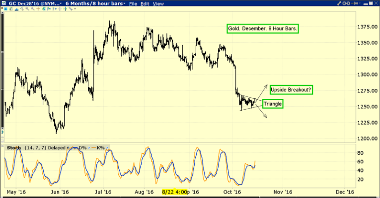 Gold is attempting to stage a nice upside breakout from a small symmetrical triangle pattern.