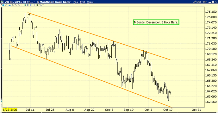 In the short term, whether a rally happens or not probably depends on what happens with the bond market. This is the short-term T-Bond chart.