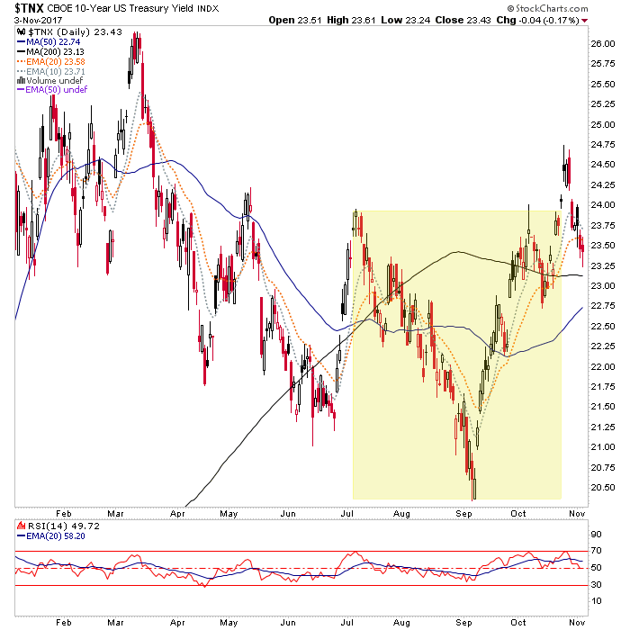 * My Q4 market top (for a significant correction at least) is still hanging out there and has the better part of 2 months left to prove out or fail. But again, the theme of this article is that bond indicators will actually decide the ‘when’ and for that matter, the ‘what’.