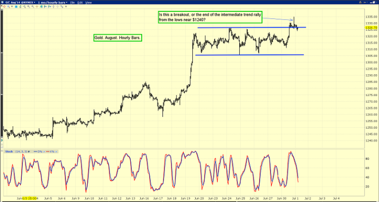 That’s the hourly bars gold chart. A persuasive argument can be made that gold staged an upside breakout last night.