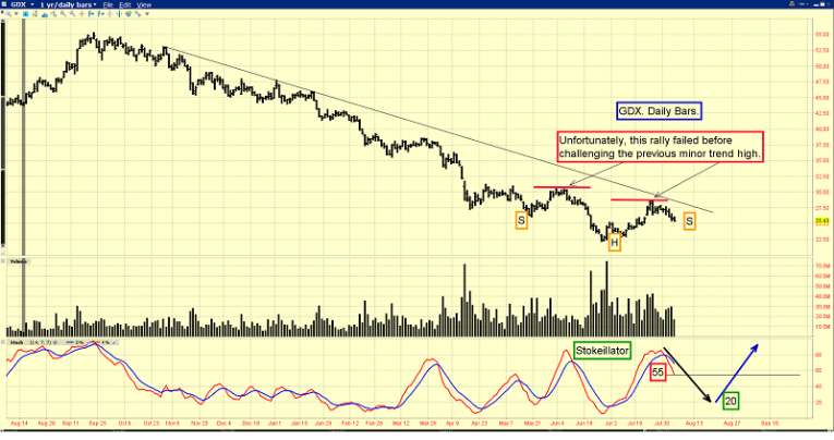 That’s the GDX daily chart. A potential inverse head and shoulders bottom pattern began forming, but the rally from the head area has failed too quickly. The pattern is now a bit of a mess.