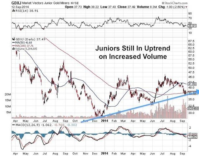 • Despite post Labor Day sell-off in precious metals, junior miners maintain uptrend.