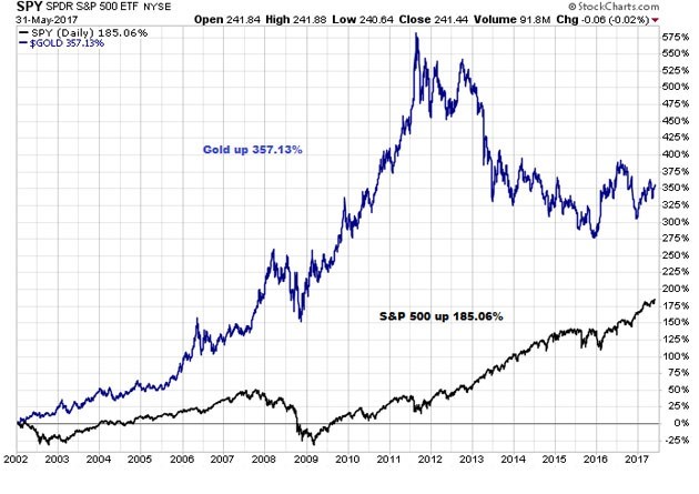 So as we plough forward into the spring of 2017, the model portfolio I constructed in 2001 and one which I actually bought in 2002 has surprised everyone by actually outperforming the S&P 500 by almost twofold but it should be emphasized that physical gold has been the premier performer while gold stocks have not done nearly as well. The fact that gold continues to be acquired by the Asian and European central banks is testimonial to the fragility of the currencies they are empowered to protect. As I sit here in the middle of England typing in an inn built in 941 A.D., it is easy to be intimidated by the sheer history of the establishment, of the village, of the region, and of the country. It is also easy to be intimidated by the constant and consistent bid in global equities in light of the slowing macro picture and looming interest rate hikes.