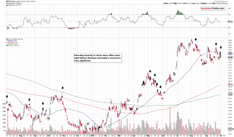 Besides, the intra-day reversals in silver (which is particularly visible in case of the SLV ETF) also have very bearish implications.