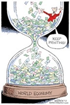 Far from the laissez faire economics Keynes endorsed at the end of his life, we have ended up with the exact opposite: A command economy directed by the state and fueled by the beneficent paper money machine of the world's central banks. Today the world economy floats on a sea of paper money backed by nothing but the promises of the governments that issued it and with little in the way of policy options except to do more of the same. Debasing the currency is no longer something to hide in the back corners of central bank policy, but to be trotted out in full view of everyone including the financial markets. Countries, in fact, compete with each other to see who can devalue their currency fastest. As Richard Russell, the recently deceased critic of central bank policies put it, the mantra has become "Inflate of die!"