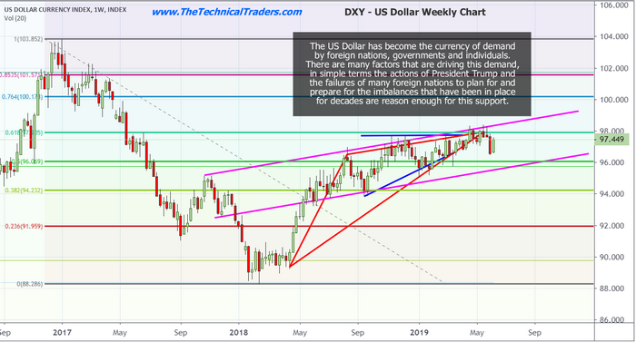 We've authored many articles about the US dollar over the past few months. We believe the strength in the US dollar will continue and that a support level above $92 is likely to continue to support the price for some time. That being said, the current price rotation near $96.50 provides a recent low price rotation level that could turn into future support after recent highs near $98.40 are broken.