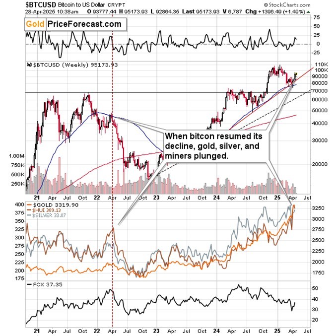 Still, after the corrective upswing was over, both: bitcoin and precious metals declined together. This is likely where we are right now – on the verge of that decline. And yes, even the time of the year is almost identical.