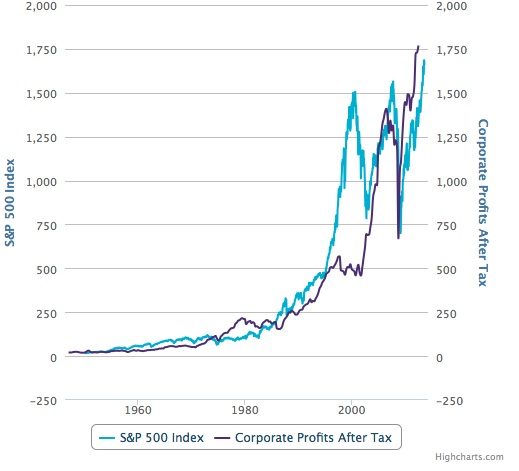 Government debt (T bonds) has been used to manipulate and engineer the economy. Corporate profits have responded as T bonds were bought and monetized.