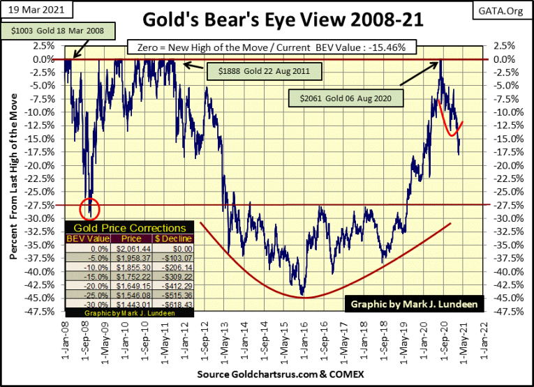 So, do I still want to call the bottom of the correction in the price of gold? I do; the BEV -18.03% seen on March 8th.