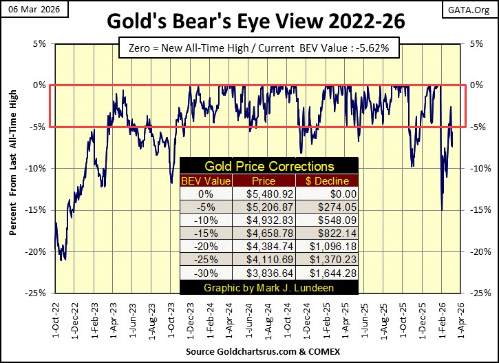 Here is gold’s BEV chart. From its last all-time high on January 28th, gold corrected to its BEV -15% line, in its BEV chart below, and has since fought its way back into scoring position for a couple of days, before falling back out of scoring position, below its BEV -5% line this week. In early March 2026, gold looks very positive, and we should see it trade at much higher prices as 2026 moves on towards 2027.