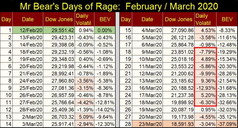 Below I’ve posted my chart of the FOMC’s weekly “injections-of-liquidity.” If you ever wondered why in March 2020, the idiots decided to begin “injecting” trillions-of-dollars of monetary inflation into the financial system, you need look no farther than Mr Bear’s Days-of-Rage above to understand their motivation.