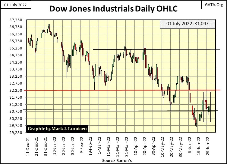 What is there to take away from this chart? As I read it, further declines in the Dow Jones in the weeks and months to come. But don’t be shocked should we see a positive week or month in the market as this bear market progresses towards its ultimate bear-market bottom.