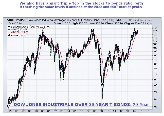 Finally, the ratio of stocks over bonds has risen to the same peak levels it attained at the major market tops of 2000 and 2007, so it’s definitely a good time for the stock market to check out.