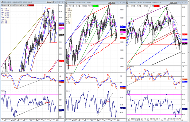 As I have mentioned several times, these three indices are supposed to be market leaders and it looks as if they are just beginning to lead the market on the downside – at least IWM and SMH are. All three are showing recent negative relative strength to SPX in increasing order of weakness from left to right.
