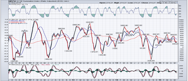 The Summation Index (next two charts courtesy of StockChart.com) remained near its low for the entire week. No sign of strength there.