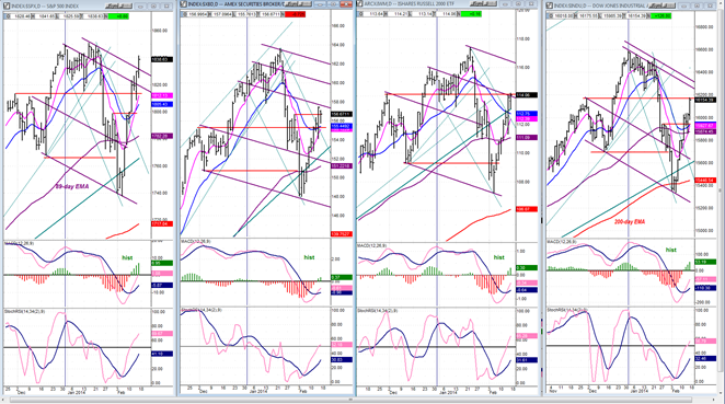 Generally speaking, SPX (far left) has continued to surge as the other three indexes have continued to lag behind. This is not normal behavior for the market and, if it is only a temporary phenomenon and the others catch up over the next couple of weeks, it will turn out to be an aberration. But if it persists, it will become a red flag.