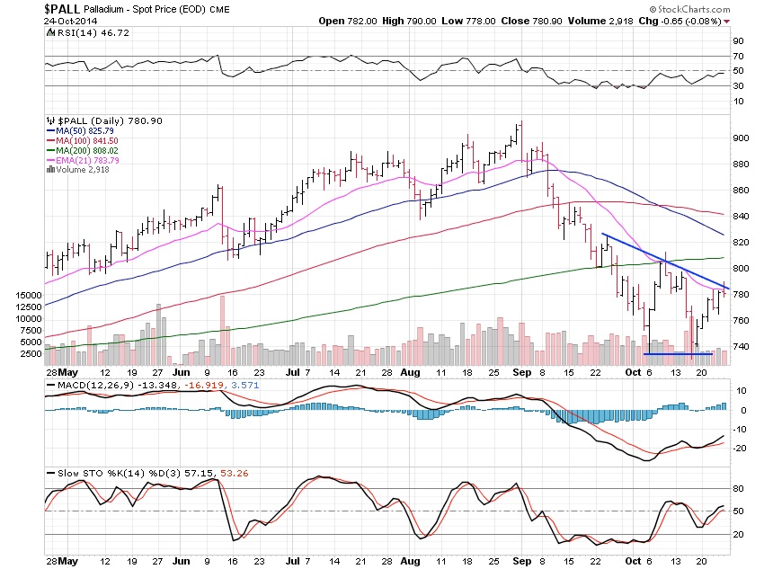 Palladium was the lone winner and gained 3.43% for the week and looks good after putting in a solid double bottom.