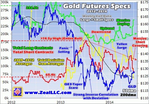 A little over a month ago, I wrote an essay on the record shorting of gold and silver futures by American speculators. This one group of traders utterly dominates gold and silver price action, and therefore the fortunes of stock traders’ flagship GLD gold ETF and SLV silver ETF. Gold futures had just seen their biggest jump in spec shorts, and silver futures their highest levels of spec shorts, in at least 15.4 years!