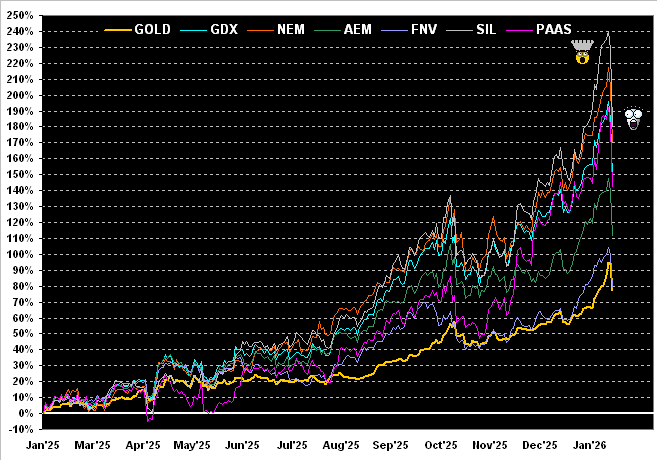 All that said, despite Gold on Friday giving up seven days of gains — and Silver 23 days — it being month-end ’tis time to present the early year-to-date BEGOS Markets’ standings, with our dear “patient” actually atop the table, (if not that for surgery):